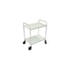 2 tier tea/food trolley. Epoxy powder coated tubular frame and grade 18/12 stainless steel shelves 0,9mm thick. 4 x 100mm swivel castors (Dimensions; width 437mm; length 914mm; height 1070mm)