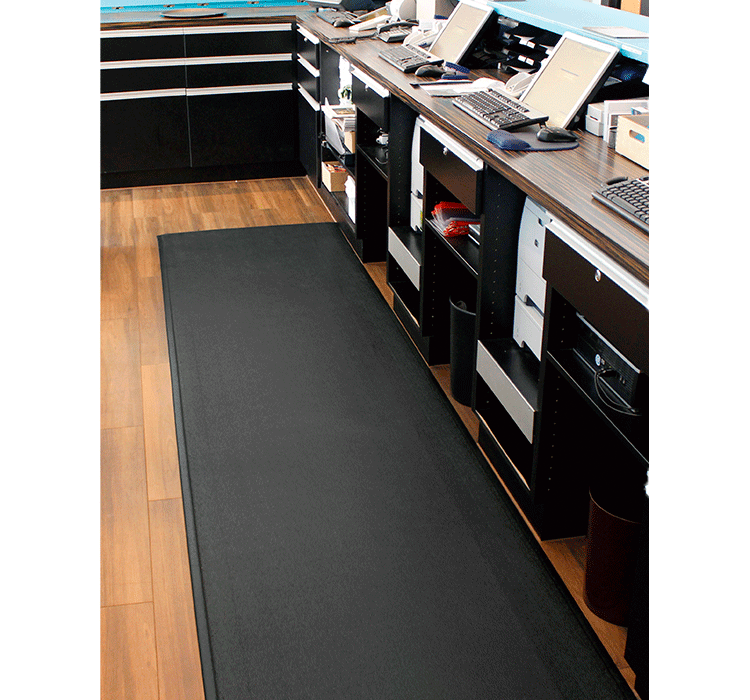 Exceptional Anti-Fatigue properties with dual fused layer construction for superior comfort and durability. Tough PVC foam textured top surface for excellent resilience against wear and tear. Low density under layer provides effective underfoot cushioning. Ideal for demanding locations. Tapered edges reduce trip hazards.