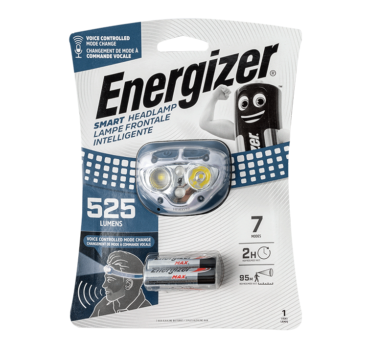 The Energizer® SMART Voice Activated Headlamp brings innovative technology and performance in a compact design. The SMART headlamp responds to voice activated commands. It shows innovative features such as the dimming technology that allows easy control of light intensity. This light has green and red LEDs which enhance night vision for outdoors activities such as hunting and fishing. The low battery indicator, located in the front of the light, will flash when battery is low, warning consumers that it is almost time to change the batteries. Adjustable head strap, water-resistant design and pivoting head to direct lent exactly as needed.