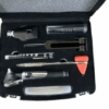 ENT Diagnostic set includes: 1x otoscope with swivel magnifying lens, 3x Ear speculum, 1x Ophthalmoscope with lens wheel, 1x Nasal speculum, 1x Bent arm illuminator, 1x Battery handle (“C” battery not included), 2x Sizes Laryngeal mirrors, 1x Tongue depressor holder, 20X Ear speculum