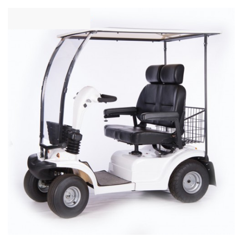 Endurance Scooter, with its fashionable design is a strong heavy duty 2 seater mobility scooter with a weight capacity of 250 kg. Front & rear suspension. Flip back, width & height adjustable arm rests, protective front screen with removable roof, LED lights, indicators & horn. Manual recline function.