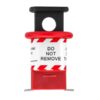 The compact circuit breaker lockout features outward-pointing prong pins, facilitating secure placement around a circuit breaker switch.