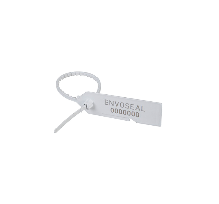 Cost effective, strong pull-trough plastic seal. Tear-line allows for easy removal by hand. Laser marking allows for clear numbers and barcoding